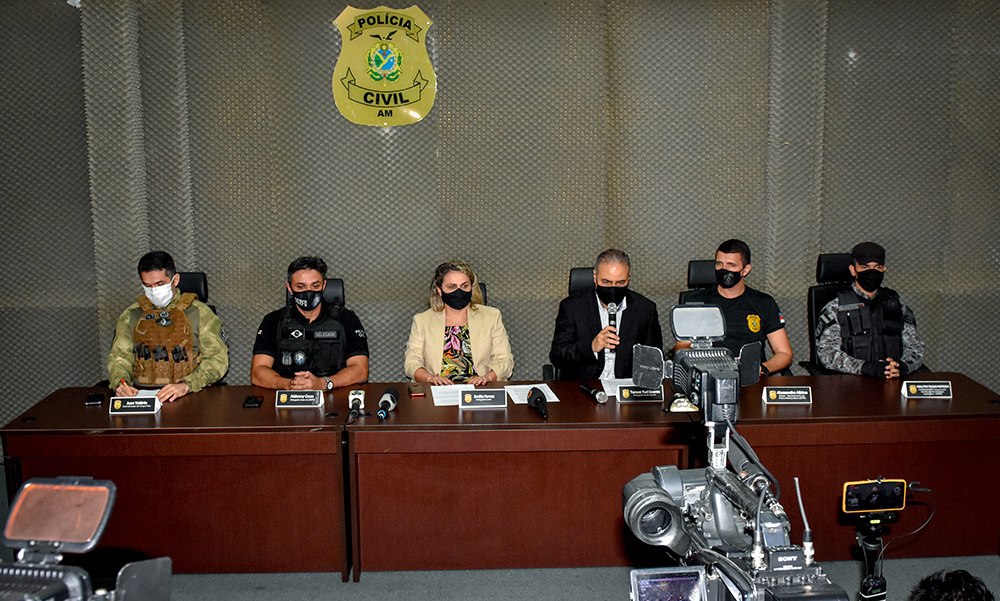 “A nossa ação teve início com a prisão, em flagrante, de cinco indivíduos em um posto de combustíveis situado na avenida Constantino Nery, bairro Chapada, zona centro-sul de Manaus”, comentou a delegada-geral.