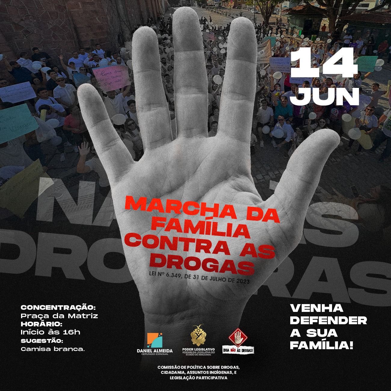 Este movimento tem como referência a Lei N° 6.349/23, de autoria do Deputado Daniel Almeida (Avante), que institui o Dia Estadual da Marcha da Família contra as Drogas no Estado do Amazonas. Neste ano, o evento passa a fazer parte oficialmente do calendário estadual.